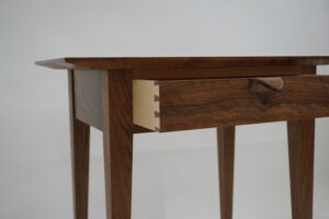 The project we were working on was a small side table made from English walnut, with a sycamore drawer. There’s a nice contrast between these two woods that you can clearly see in the dovetail joints, when you open the drawer.