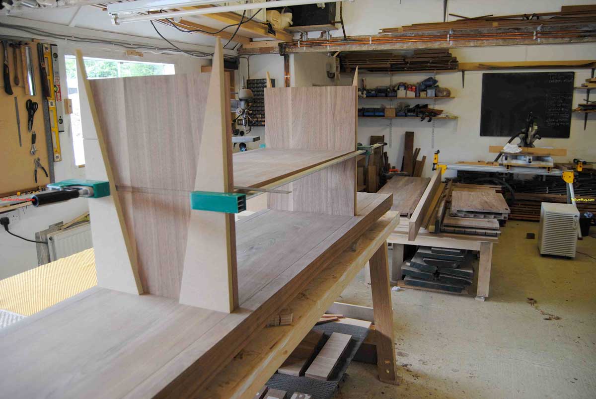 A mock-up of the sideboard top was made in MDF in order to get approval from the client on the chamfer detailing and sculpting before committing those to the real walnut top.