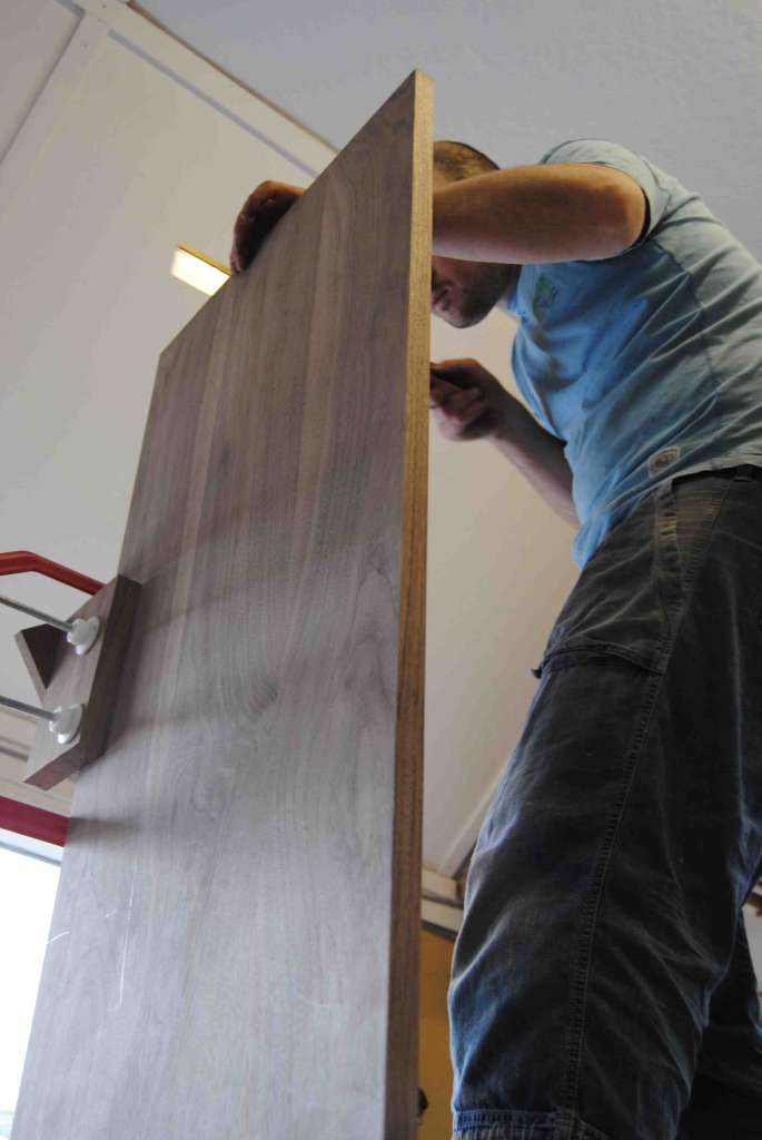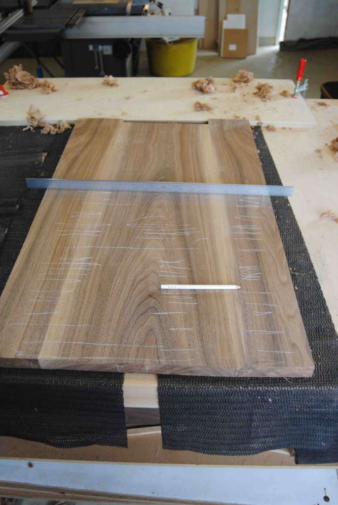 At this point most of the components have been labelled with their numbers and marked up for handing. Certain components will also be paired so as to ensure continuity in the grain pattern, for instance with the handles, in the image below.
