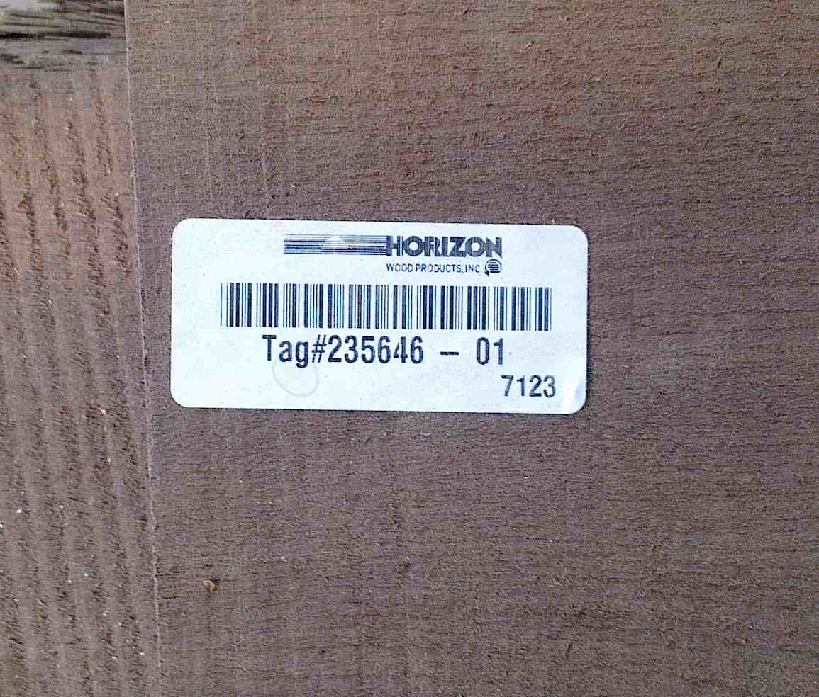 The label in the image below shows the 4 digit pack number (bottom right) and the 6 digit log number followed by the 2 digit board number. This is what makes it possible to rebuild the log as shown in the photos here, which is great for matching grain and colour through the making of the piece, and also for book matching the veneers.
